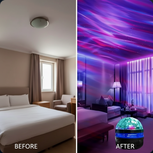Voyez comment votre pièce passe d’un espace ordinaire à une ambiance céleste en quelques secondes. Notre projecteur crée une atmosphère unique, relaxante et immersive